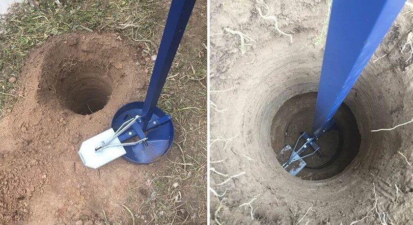 Далее выполняют заливку бетоном. Вначале производят частичную заливку только на высоту уширения. После этого в скважину опускают свернутый в цилиндр рубероид, который выполняет функцию опалубки, а также он будет обеспечивать гидроизоляцию фундамента ТИСЭ. Цилиндр опалубки должен выступать над поверхностью грунта не менее чем на 15-20 см. Поднимающуюся над поверхностью часть обвязывают проволокой и обсыпают грунтом, чтобы не допустить деформации при заливке. После этого подготовленная скважина заливается бетоном на полную высоту опалубки.