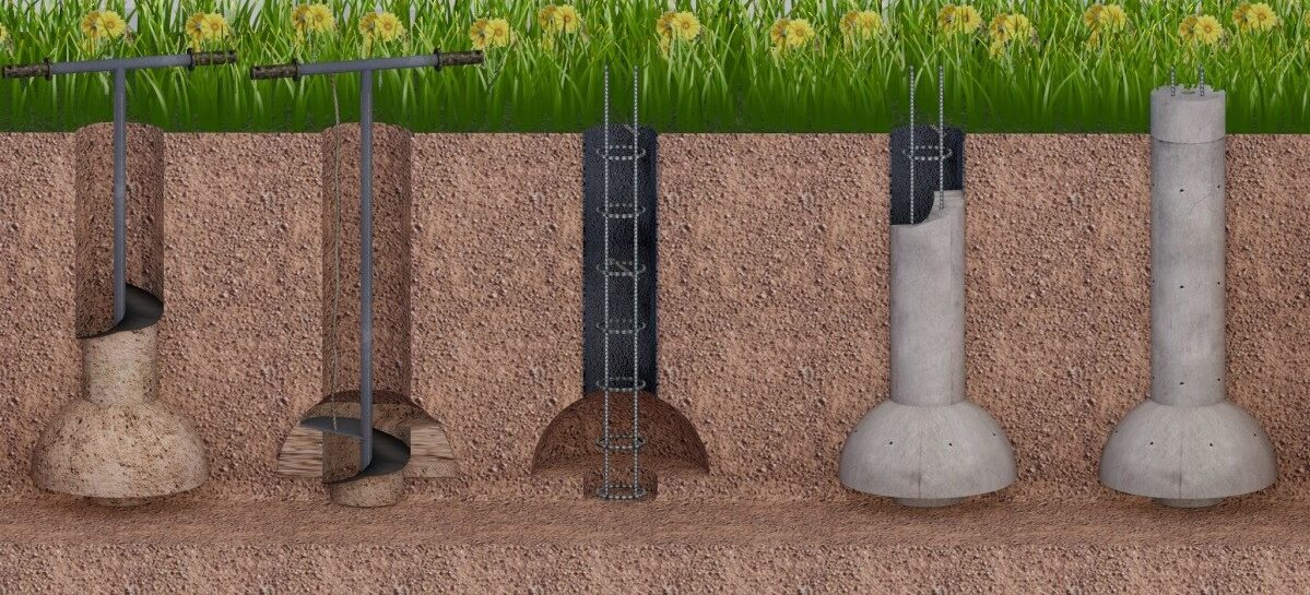 Фундамент ТИСЭ – разновидность свайного или свайно-ростверкового фундамента, применяемого в малоэтажном строительстве. Его главная конструктивная особенность состоит в утолщении сваи в оконечной части. Погруженный в грунт конец приобретает форму купола. Такое решение повышает несущую способность основания. В том числе его можно применять при строительстве на пучинистых грунтах.
