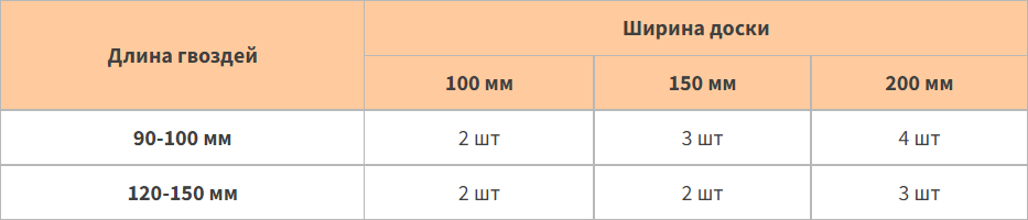 Рекомендации по длине и количеству гвоздей при сборке силового каркаса