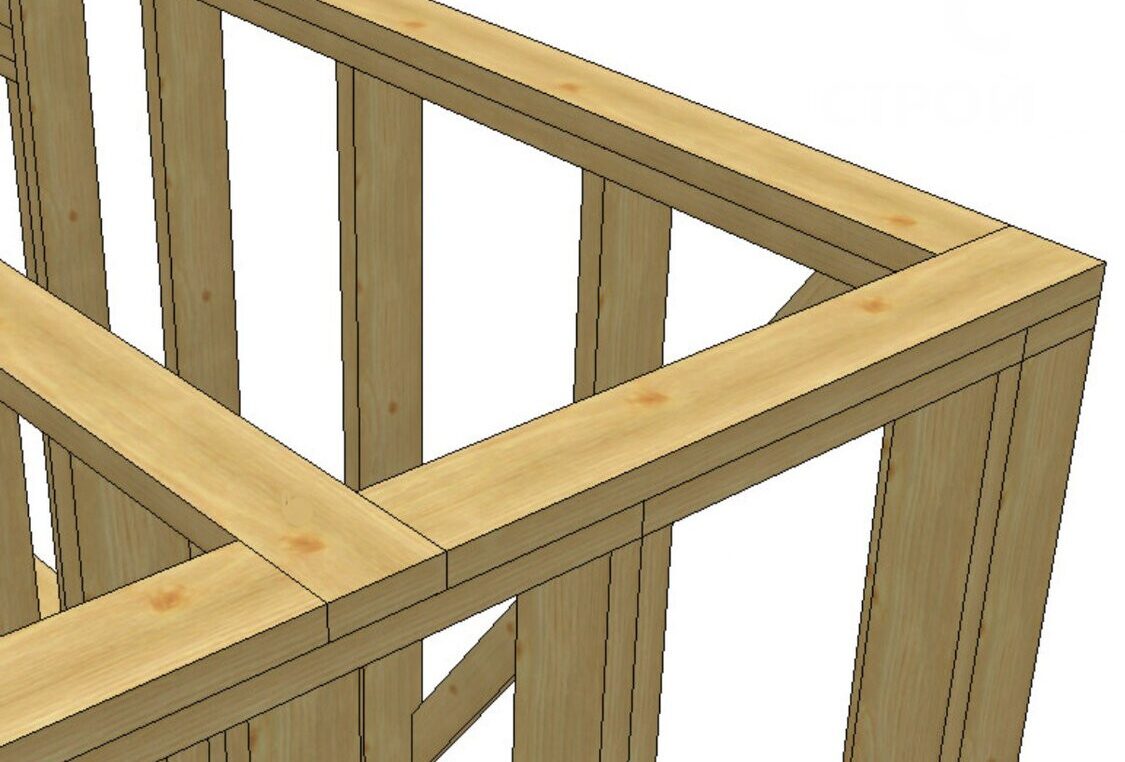 Это верхняя горизонтальная часть стены, которая вместе с нижней обеспечивает жесткую связь стоек. Особенность каркасной стены по канадской технологии состоит в том, что при строительстве используют дополнительную вторую верхнюю обвязку, которая перекрывает стыки первой.