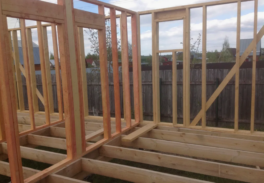 Главная особенность внутренних несущих стен – их конструктивная прочность и способность воспринимать нагрузки от перекрытия. Поэтому при проектировании и сборке их делают из доски того же сечения, что и весь силовой каркас.