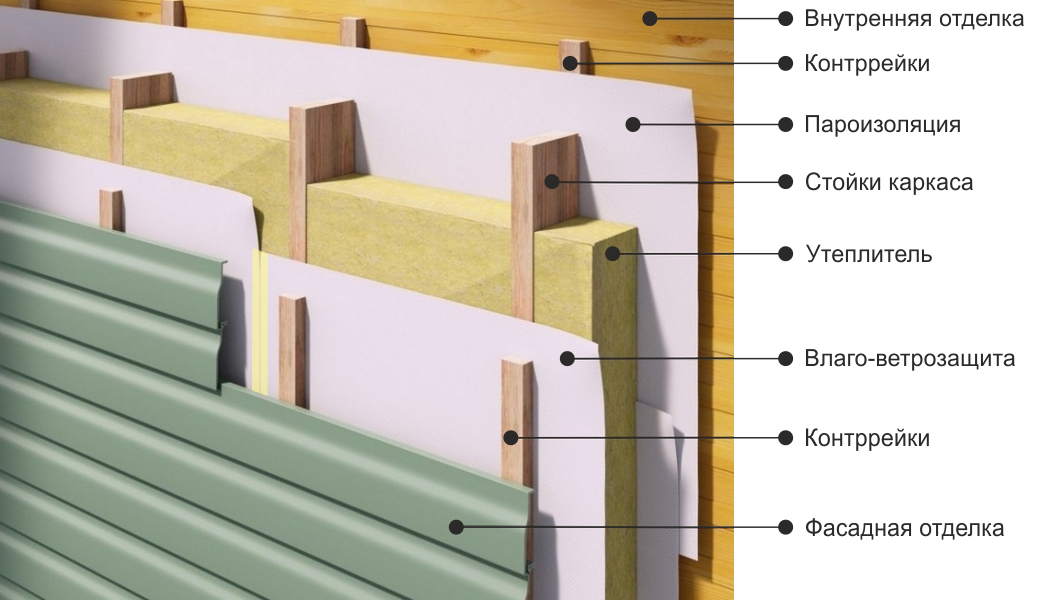 - влаго-ветрозащитный слой, защищающий стены здания снаружи от влаги и продувания;