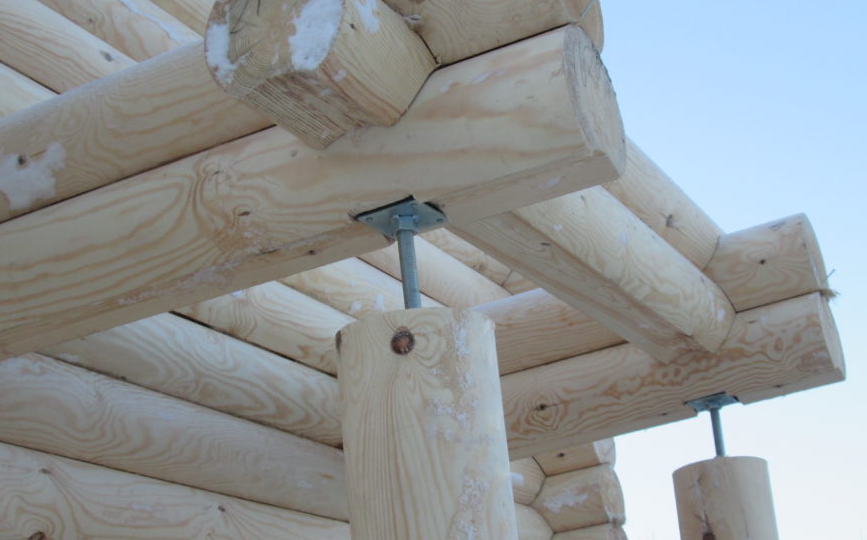 При выборе винтового компенсатора усадки необходимо обратить внимание на размер и массу используемых бревен или брусьев. Например, для одноэтажных строений чаще достаточно небольших регулировочных анкеров с диаметром шпильки 20 мм, размерами пластин 100х100 мм и толщиной металла 6 мм. Для более тяжелых зданий в несколько этажей и из крупных бревен или брусьев есть необходимость использования «домкратов» с диаметром стержня 24-30 мм и толстыми (вплоть до 20 мм) пластинами с размерами 150х150. Касаемо длины, то на практике чаше всего используется усадочный домкрат со шпилькой 150 и 200 мм.