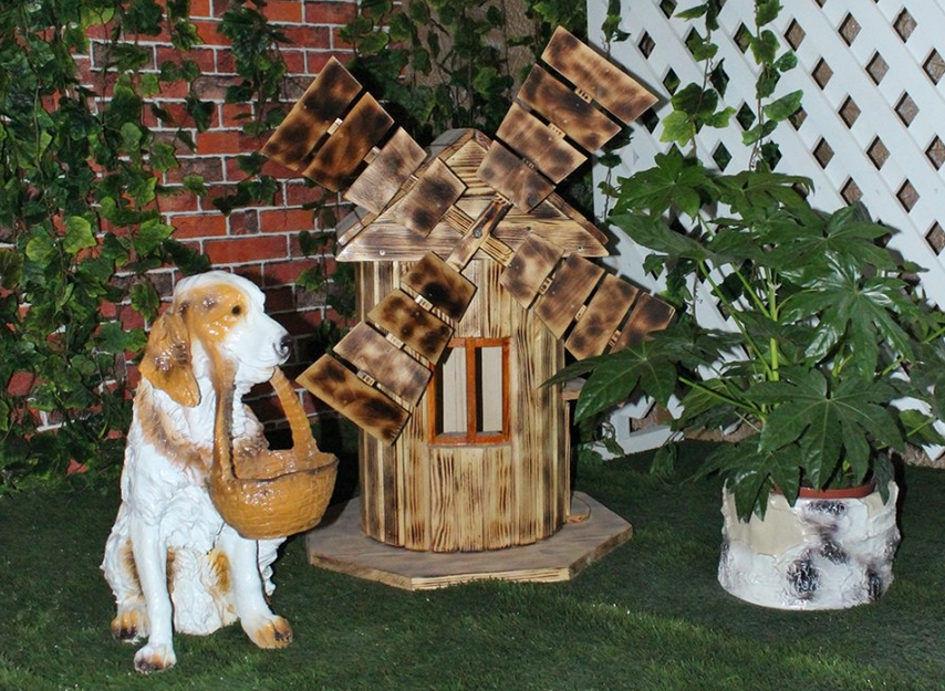 - Украшение участка. Декоративная мельница является ярким акцентом в саду или на даче, она добавляет шарм и создает атмосферу деревенской жизни.