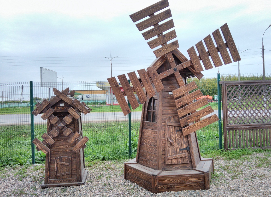 Деревянные мельницы являются наиболее популярным вариантом благодаря своей природной эстетике и экологичности. Они могут быть изготовлены из различных пород древесины. Мельницы из дерева можно раскрасить в любые цвета, что позволит им гармонично вписаться в общий стиль вашего участка.